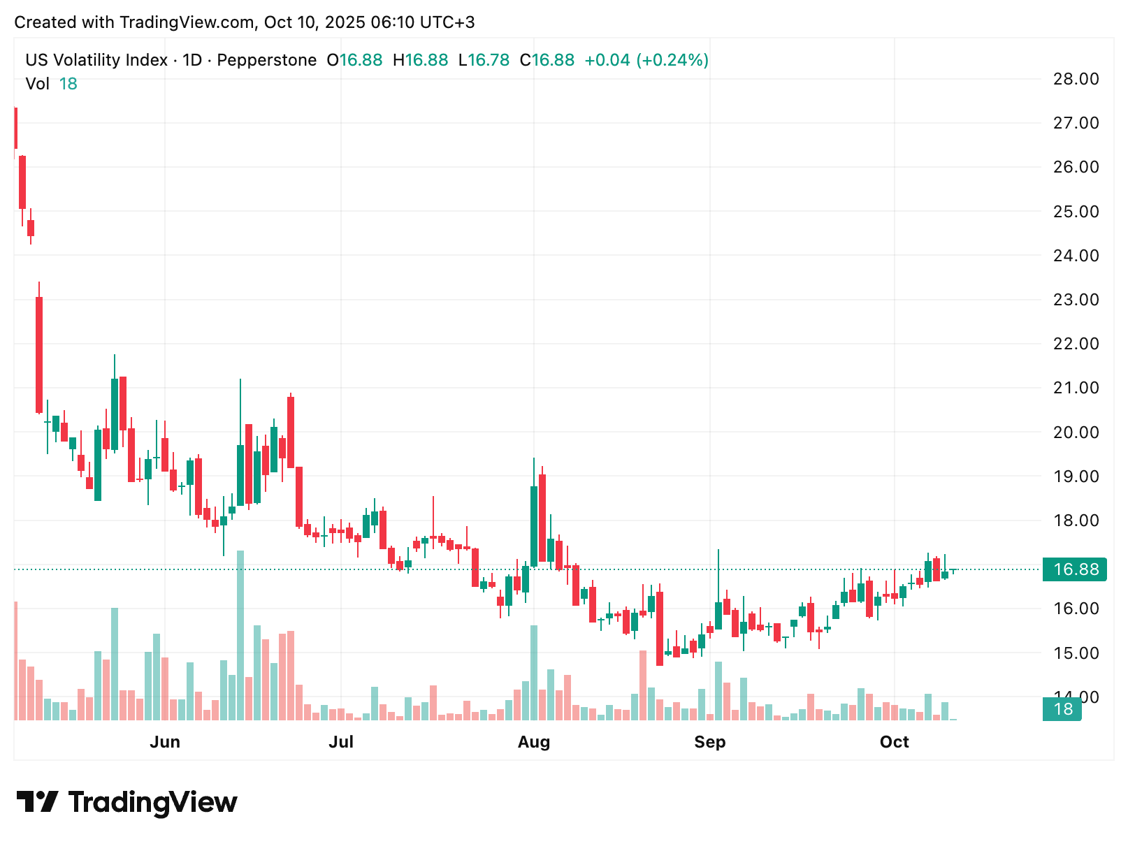 ~16.88 - steady, suggesting markets are relaxed into the weekend.