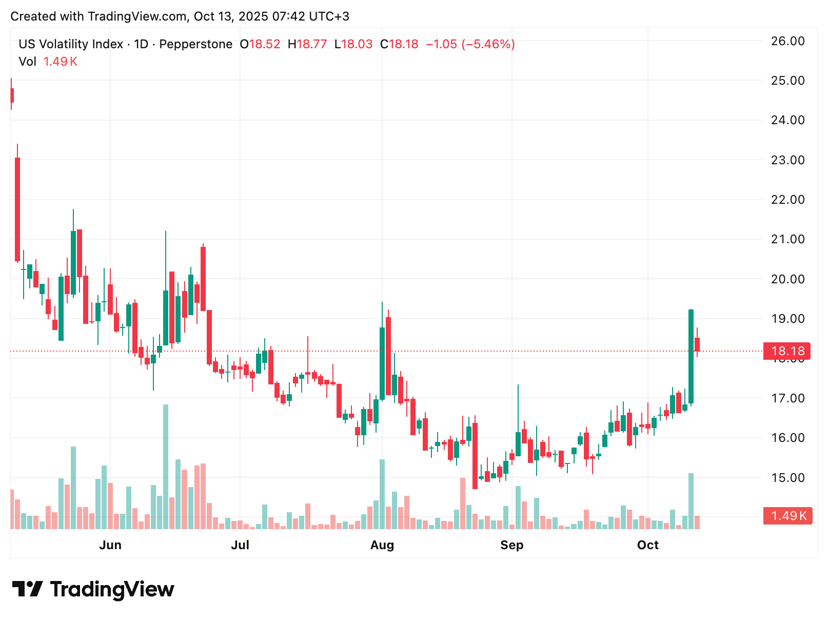 18.18 - down 5.5% from last week’s high, showing easing fear but still above summer lows.