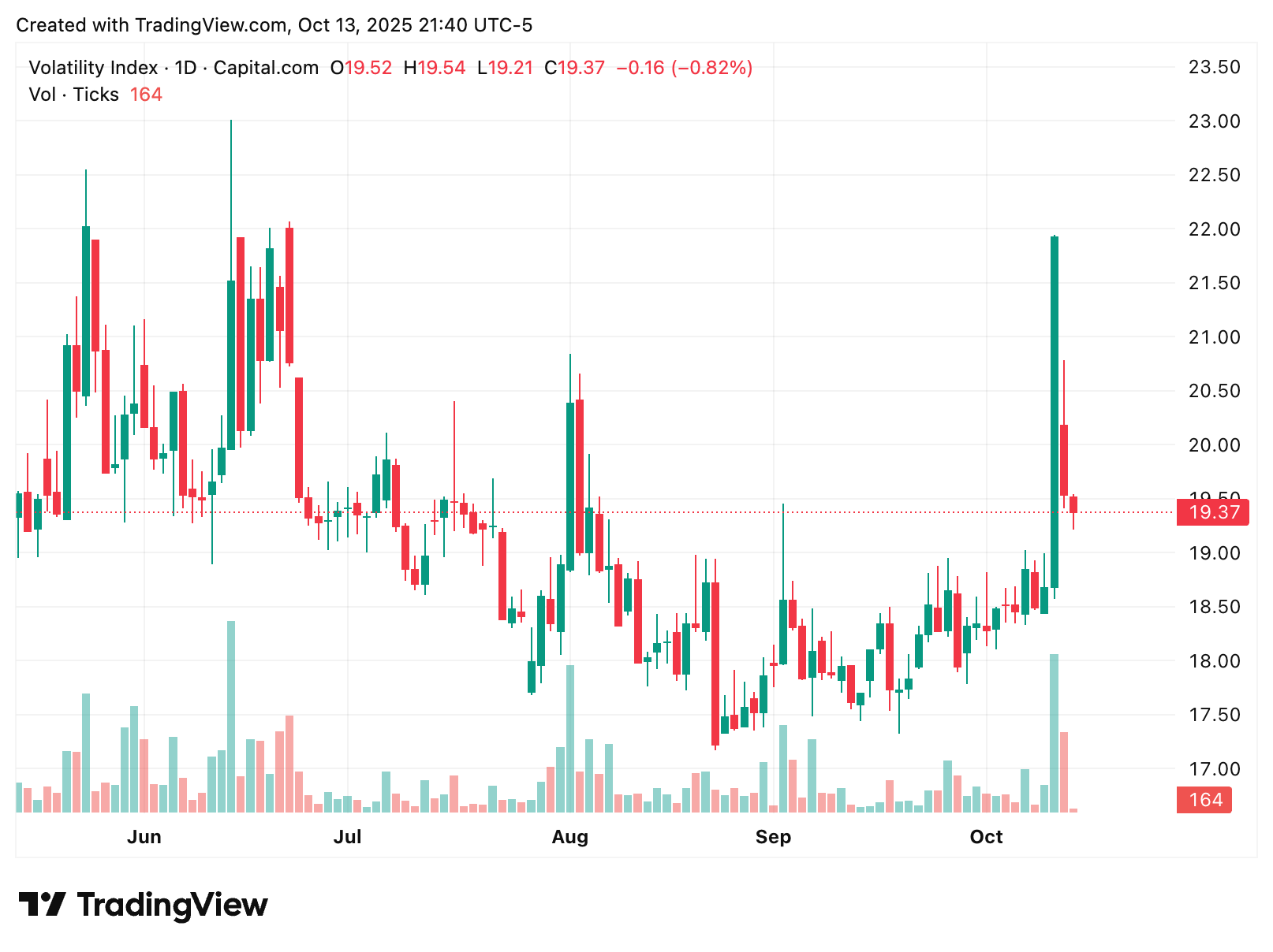 19.37 - Elevated but easing after last week’s spike; traders remain alert for more swings