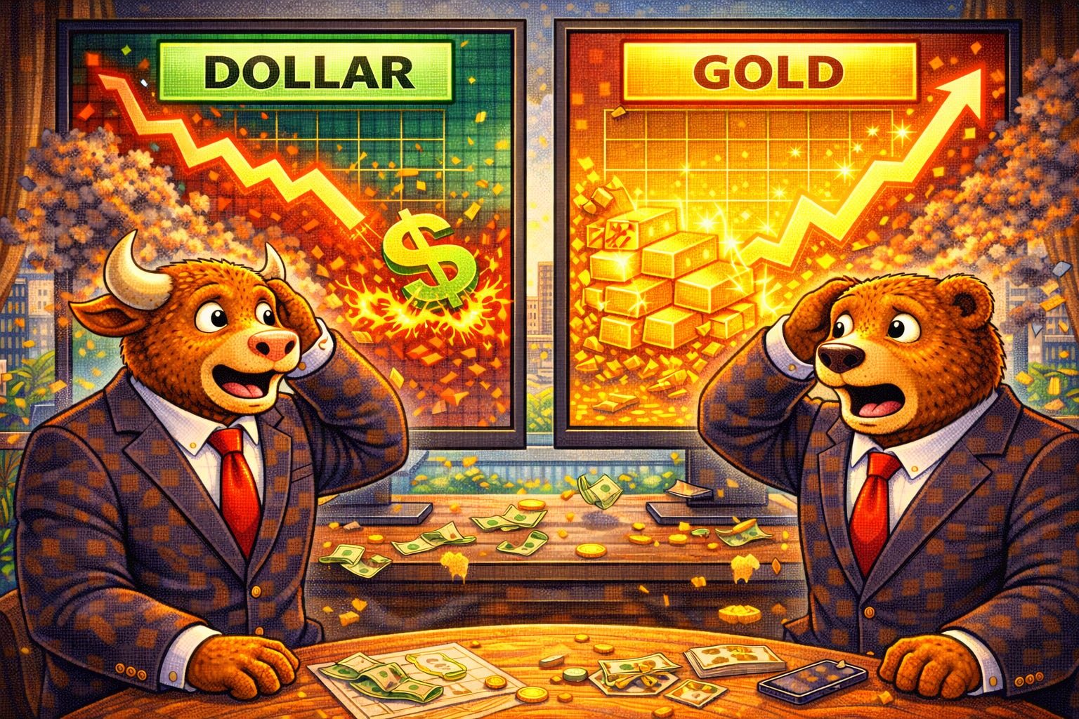 Gold strength contrasts with weaker equities and crypto.