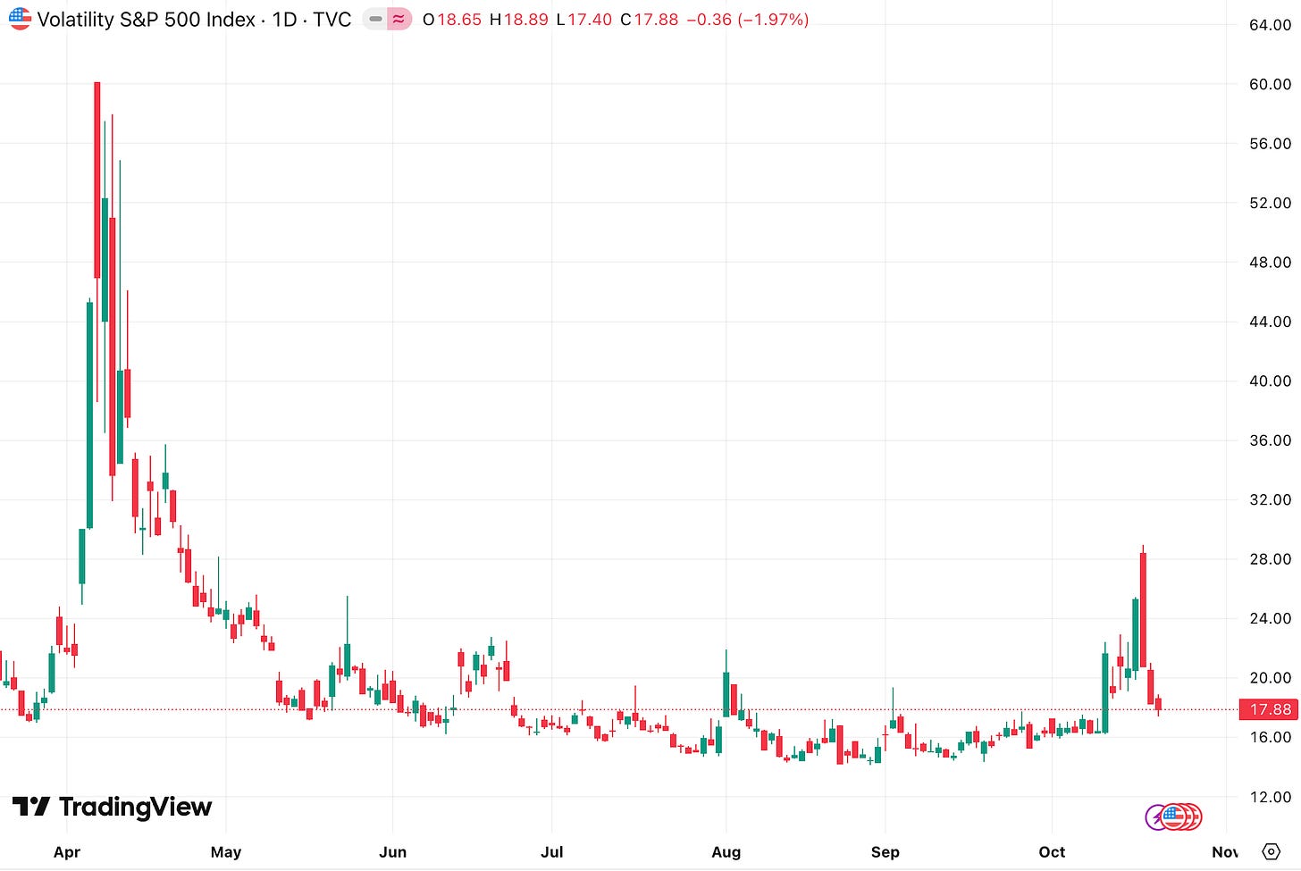 ~18 pts – falling from last week’s highs, indicating some calm return, but still elevated relative to recent norms.